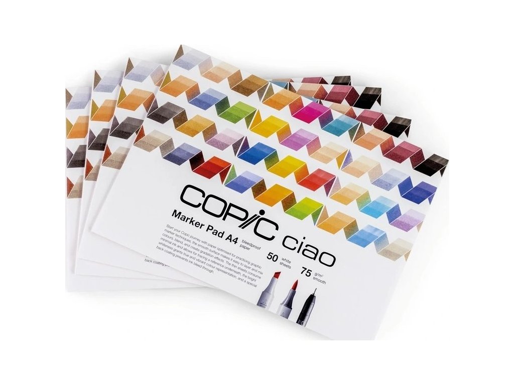 COPIC Ciao Marker Pad A4 je přesně to, coваše markery potřebují – speciálně vyvinutý povrch pro alkoholové fixy, který zajistí dokonalé vrstvení barev bez prosáknutí. Díky unikátnímu povlaku můžete vrstvit i 5-6x přes sebe, přitom další list zůstane čistý.