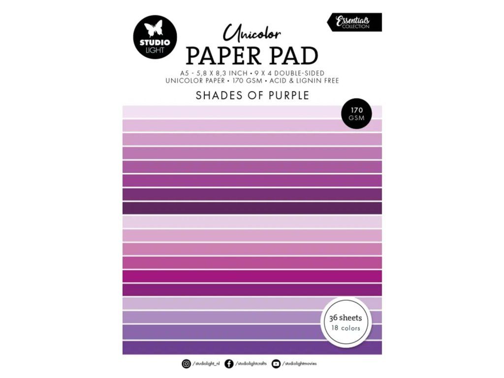 Blok barevných papírů Studio Light, A5, 36 l. - odstíny fialové