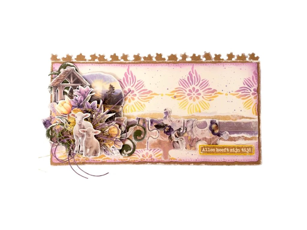 Blok papírových obrázků v kreativním bloku ze zasněné kolekce Growing & Blooming. Jednotlivé motivy jsou předvyseknuté, obrázky stačí ze stránky pouze vyloupnout k dalšímu tvoření, nemusí se vystřihovat.