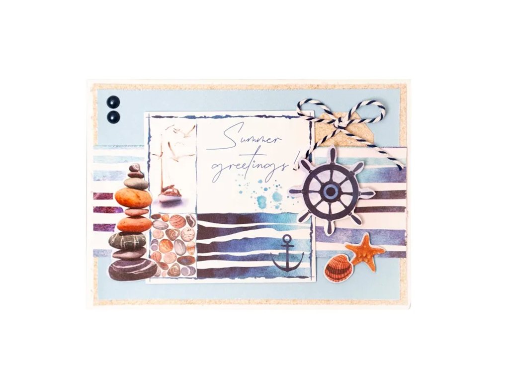 - 32 listů plných inspirace – Uvnitř najdete 2 x 10 oboustranně vzorovaných papírů a 2 x 6 listů s předvyseknutými obrázky, štítky a kartičkami. Každý list je jako okno do světa mořských dobrodružství.