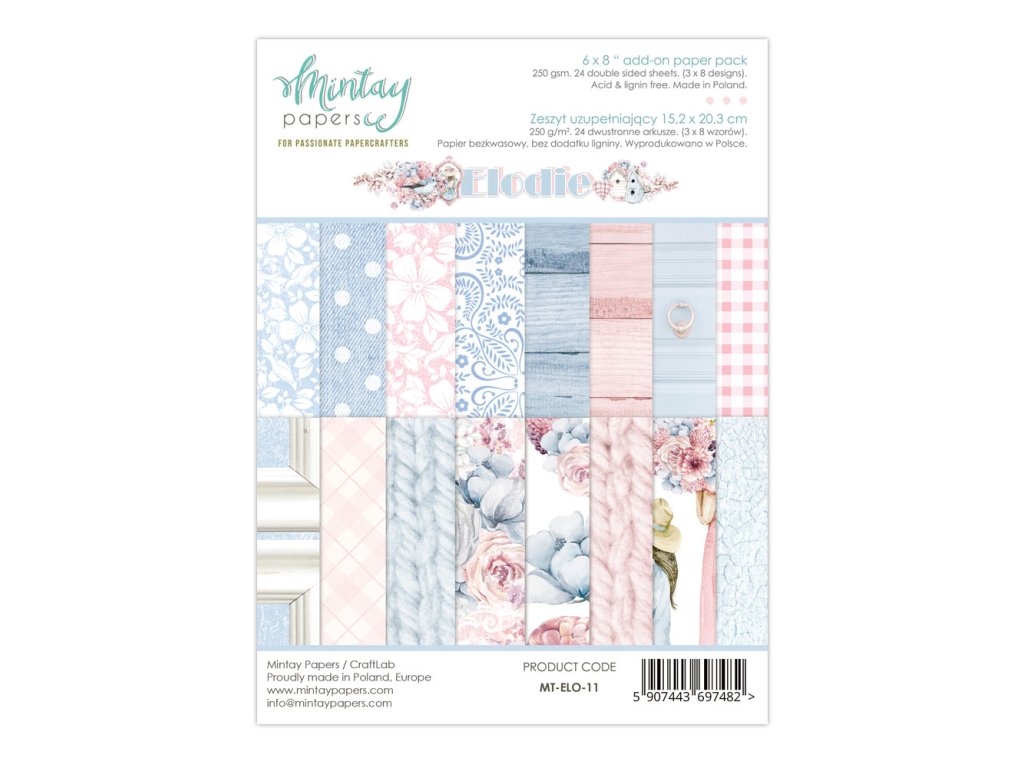 Proměňte své scrapbookové projekty v umělecká díla s touto prémiovou sadou 24 oboustranných papírů Elodie. Každá čtvrtka v perfektní velikosti 15,2 x 20,3 cm nabízí 8 jedinečných designů, které dokonale ladí a otevírají vám dveře k neomezeným kombinacím.