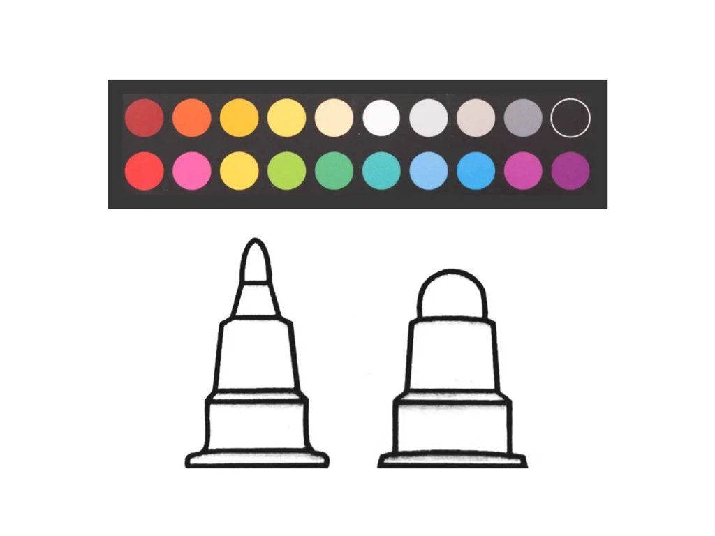 - inkoust na vodní bázi je rychleschnoucí a vysoce krycí, můžete tak tvořit na bílém, barevném i černém podkladu