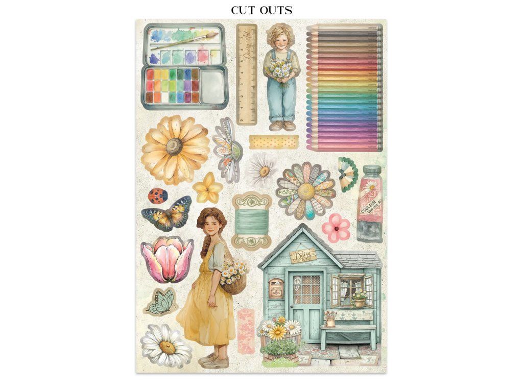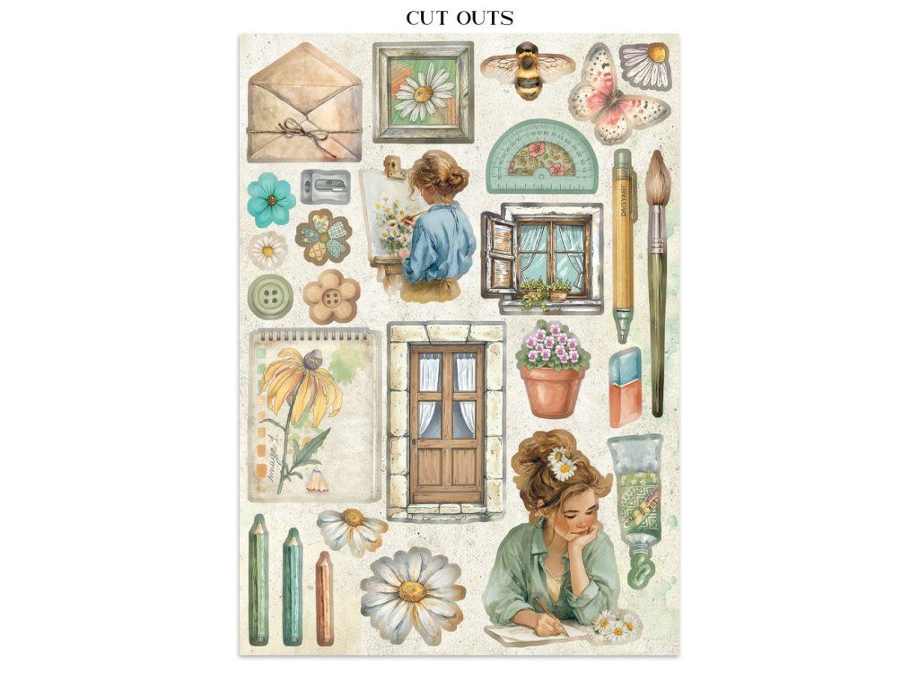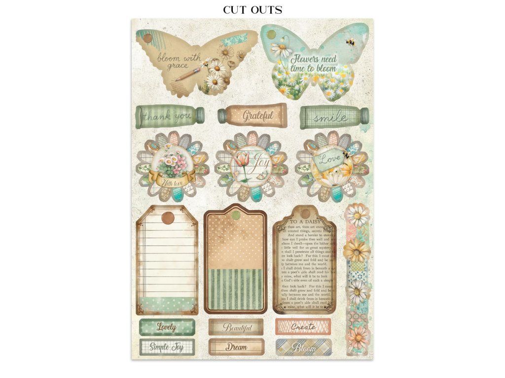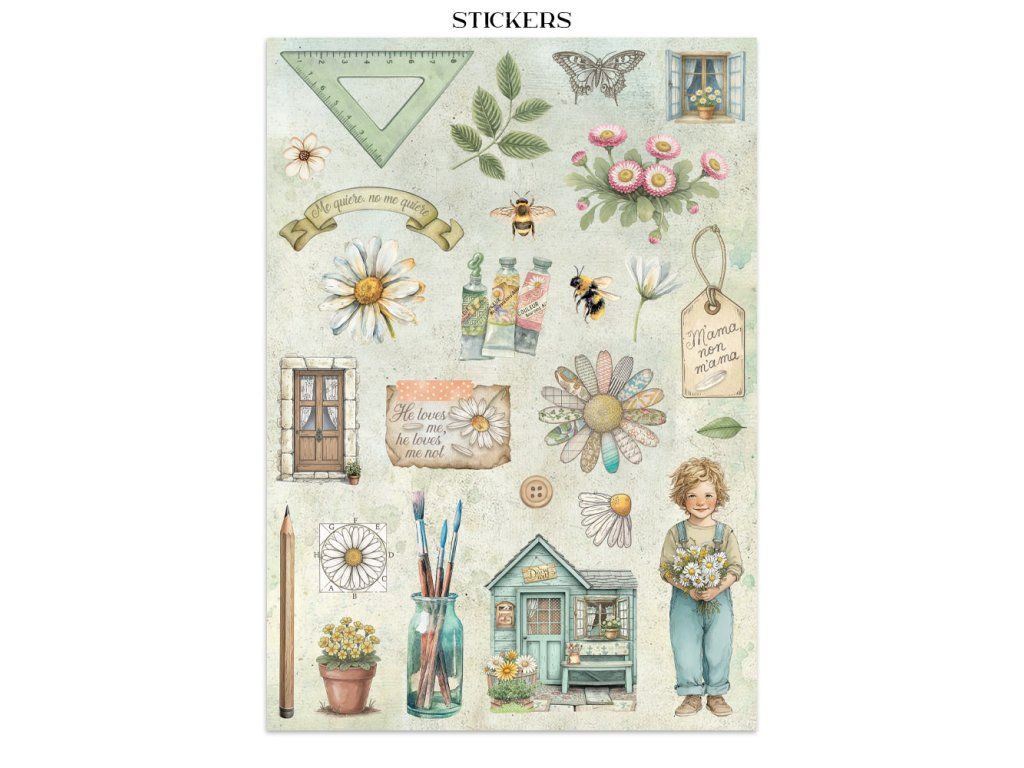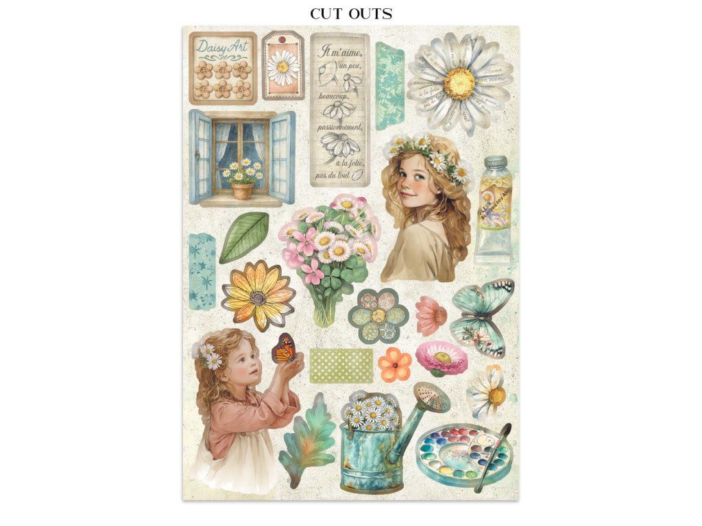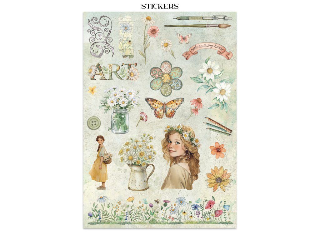 Junk Journal A4 Daisy Art Sada papírů, samolepek a výřezů