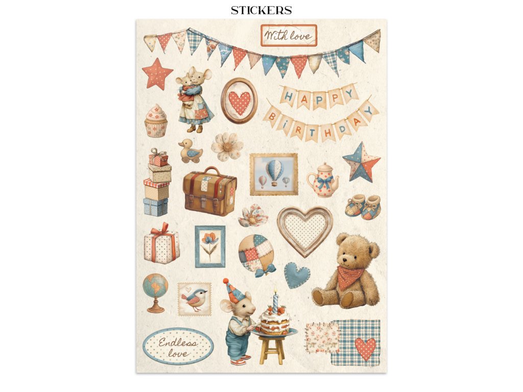 Junk Journal A4 Family Sada papírů, samolepek a výřezů