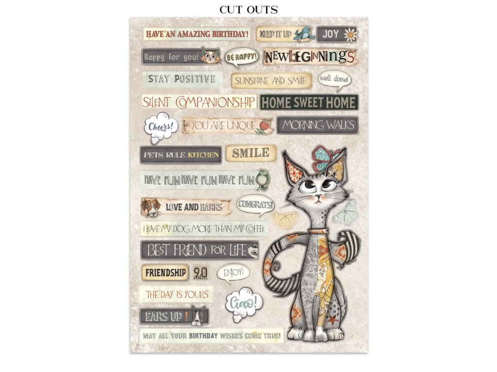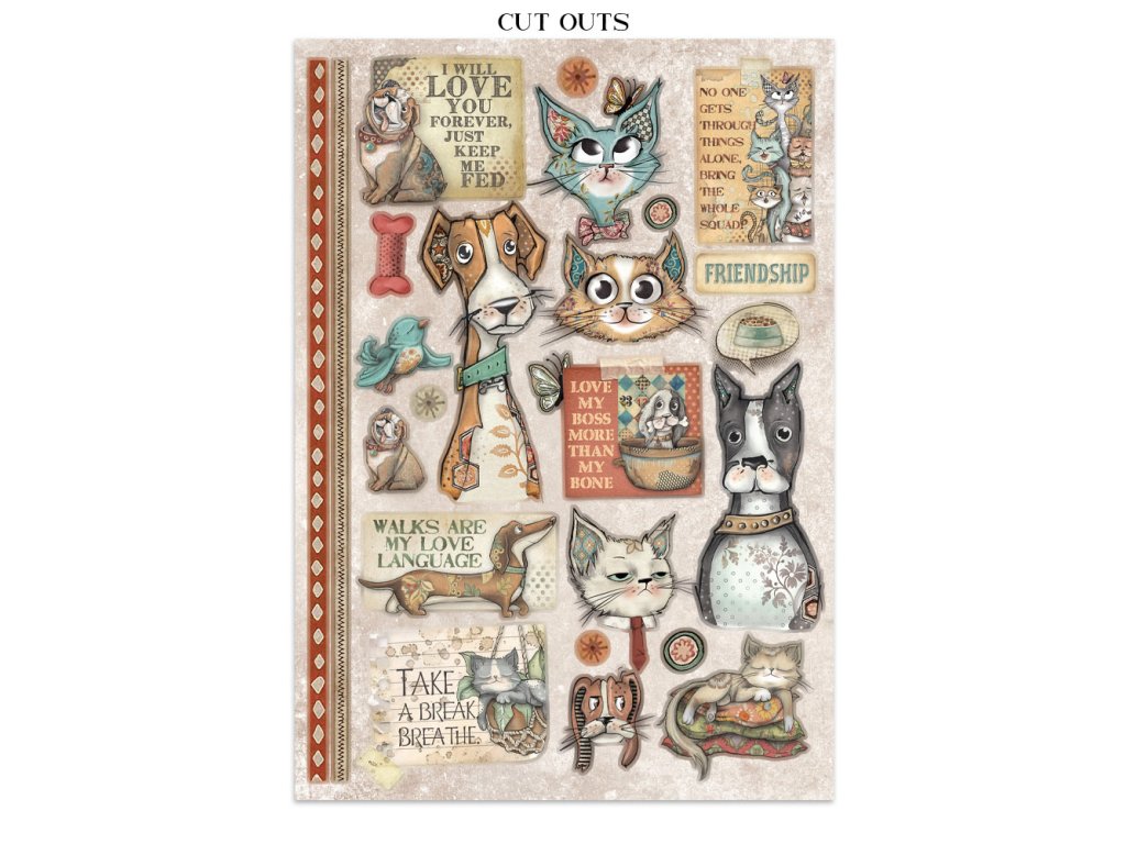 Stamperia Furry Friends je kompletní balíček plný roztomilých koček, psů, květin a vintage prvků – vše, co potřebujete k vytvoření jedinečných scrapbookových stránek, přáníček nebo osobního deníku. 8 oboustranných kartonů, 4 stránky samolepek a 4 stránky výřezů – to je 16 listů čisté kreativní radosti ve formátu A4.