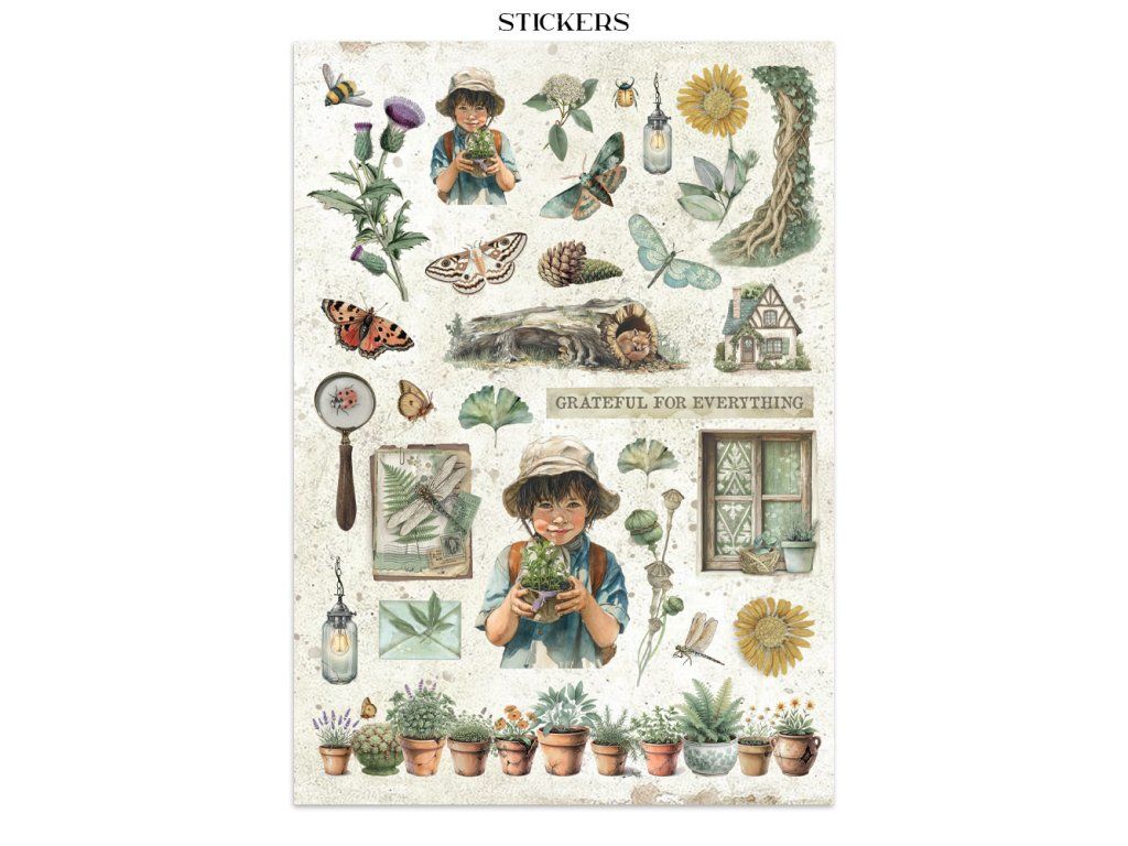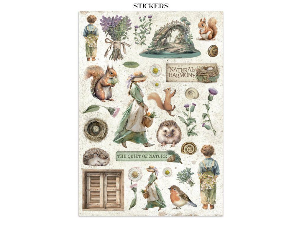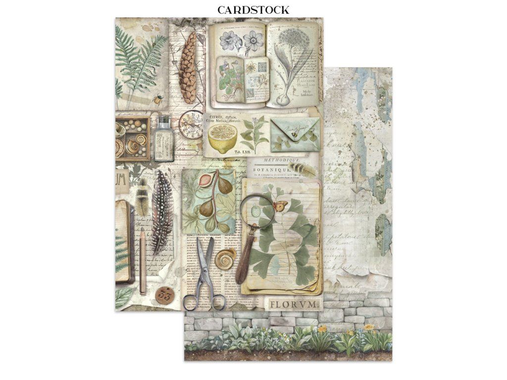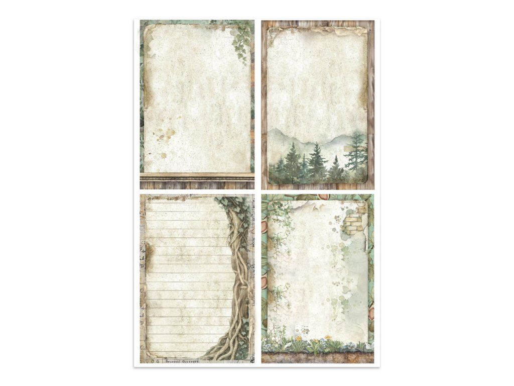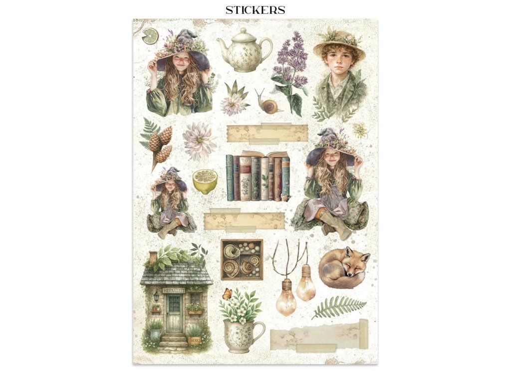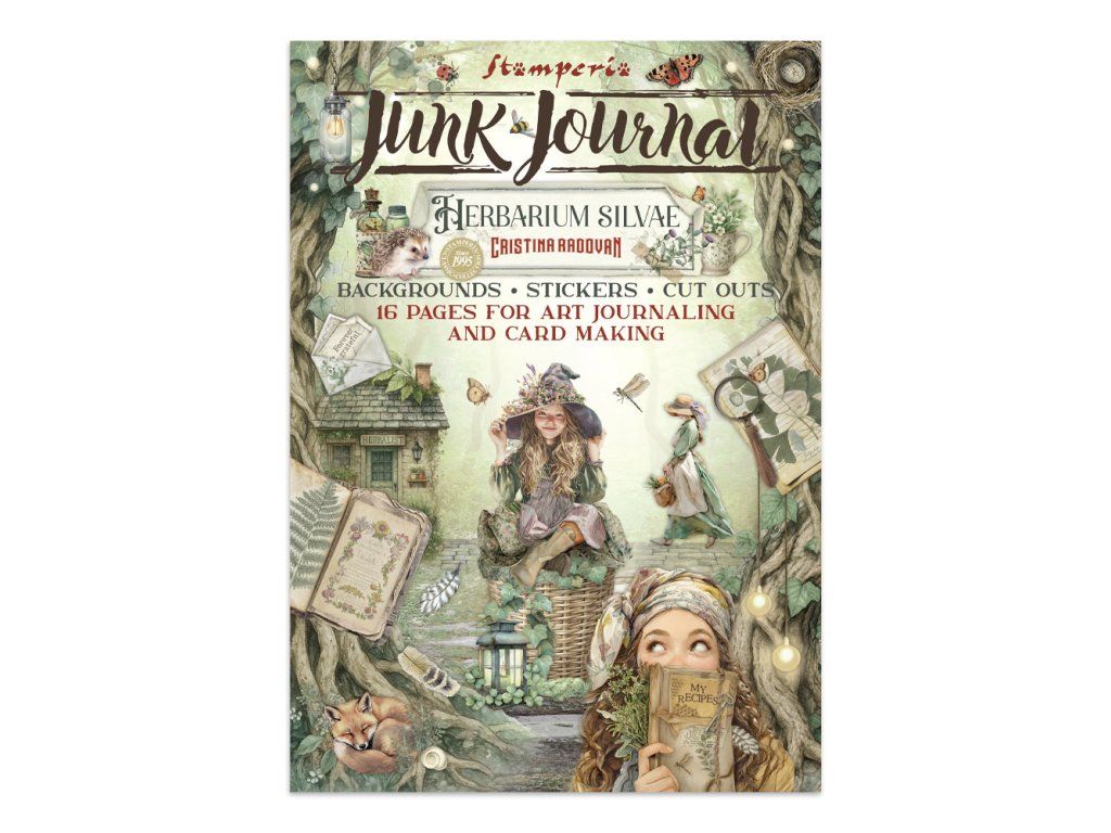 Junk Journal A4 Gerbarium SIlvae Sada papírů, samolepek a výřezů
