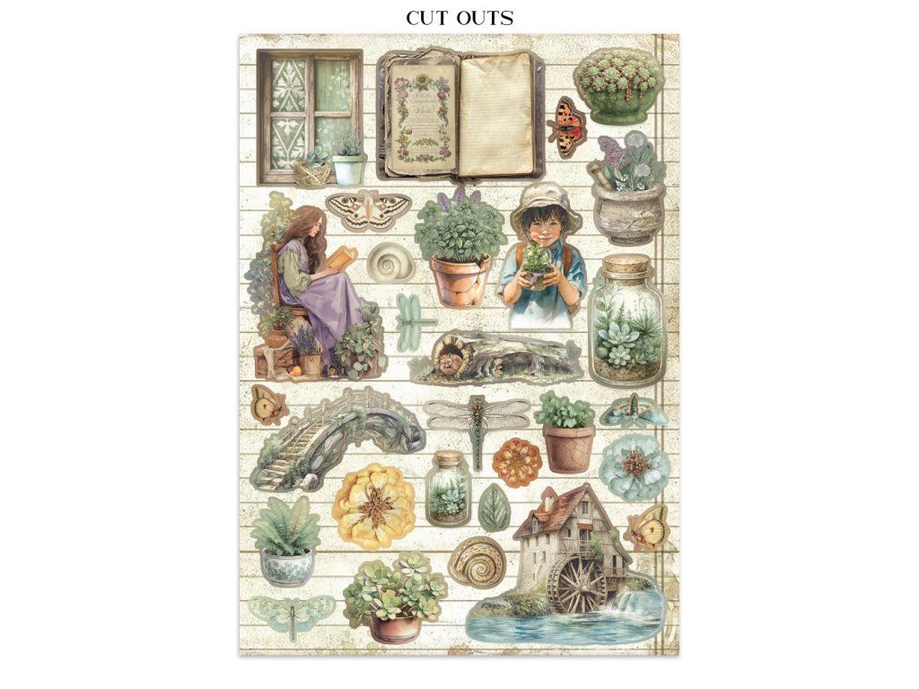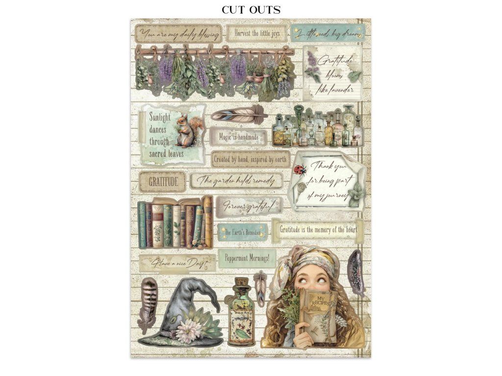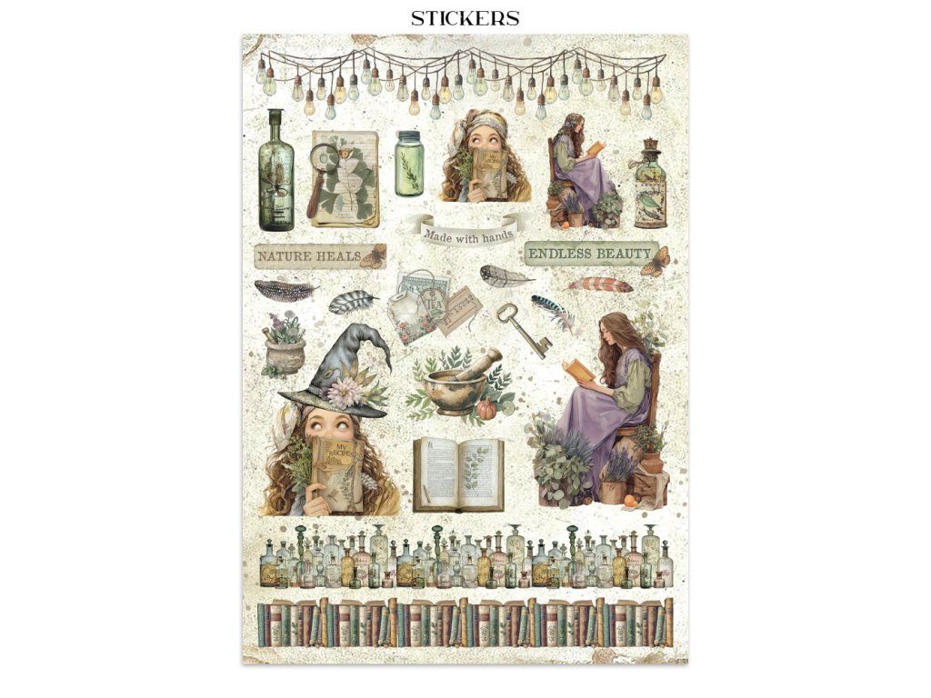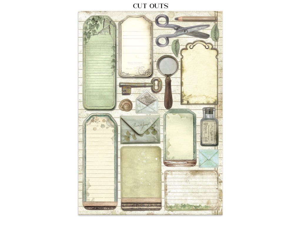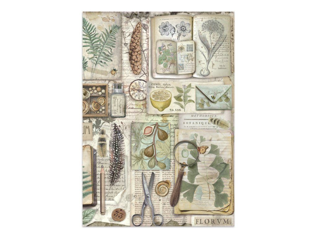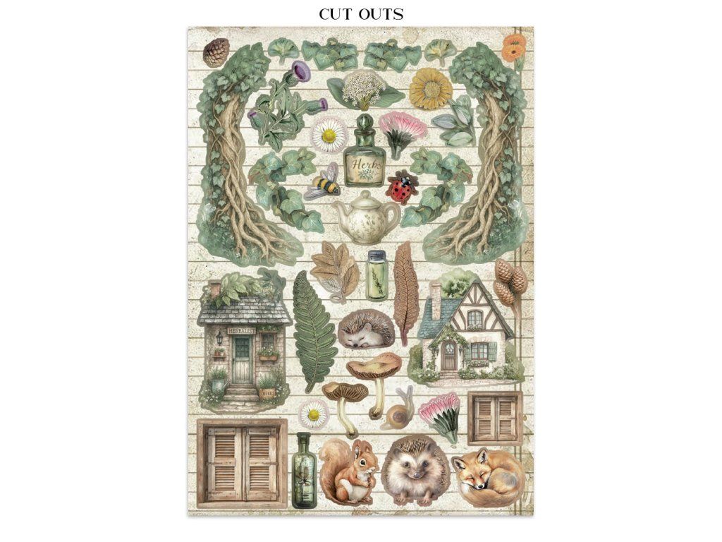 Junk Journal A4 Gerbarium SIlvae Sada papírů, samolepek a výřezů