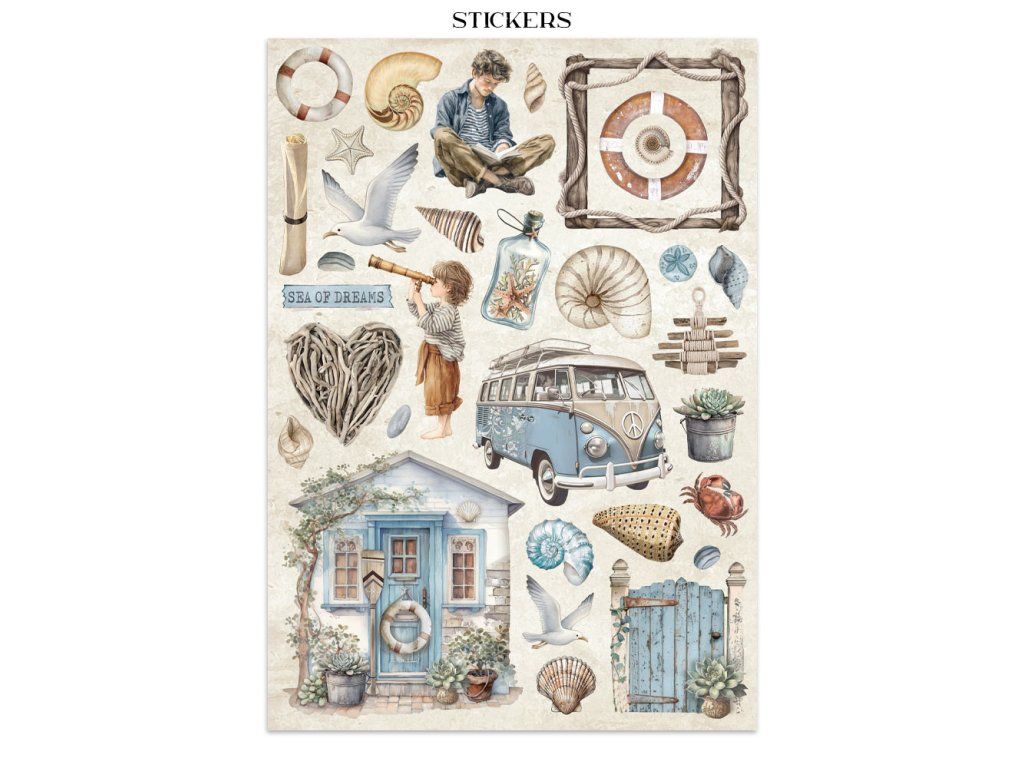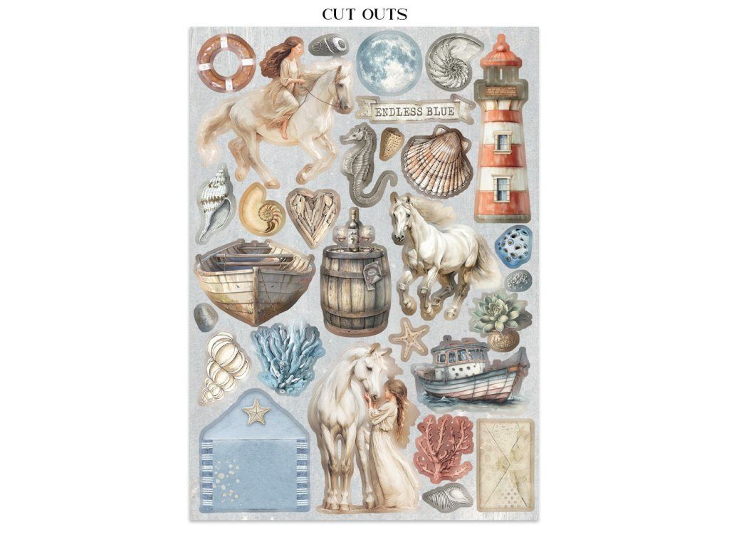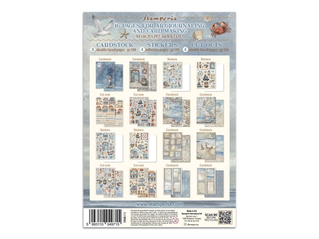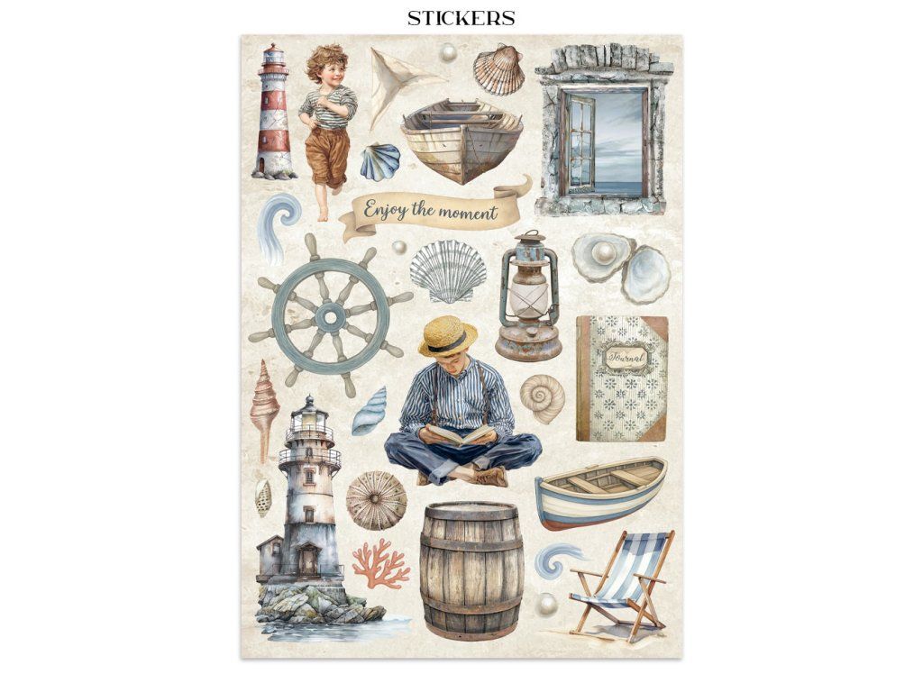 Junk Journal A4 Silent Sea Sada papírů, samolepek a výřezů