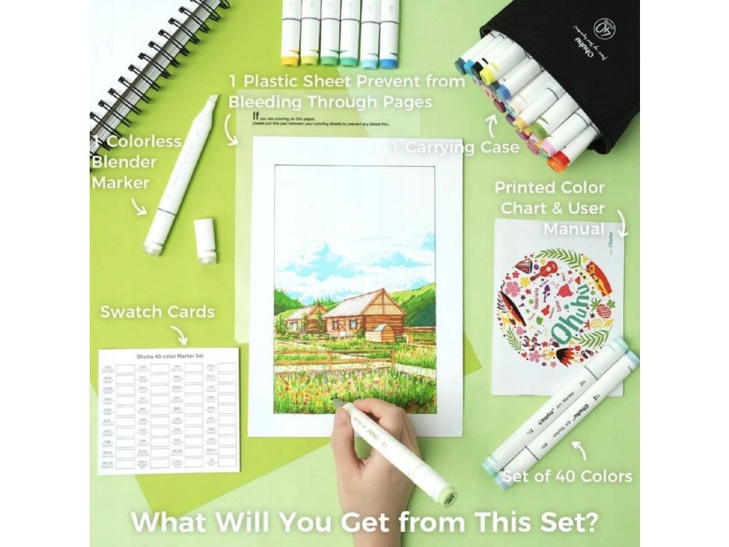 Lihové fixy OHUHU oboustranné Fine & Chisel, 40ks + blender