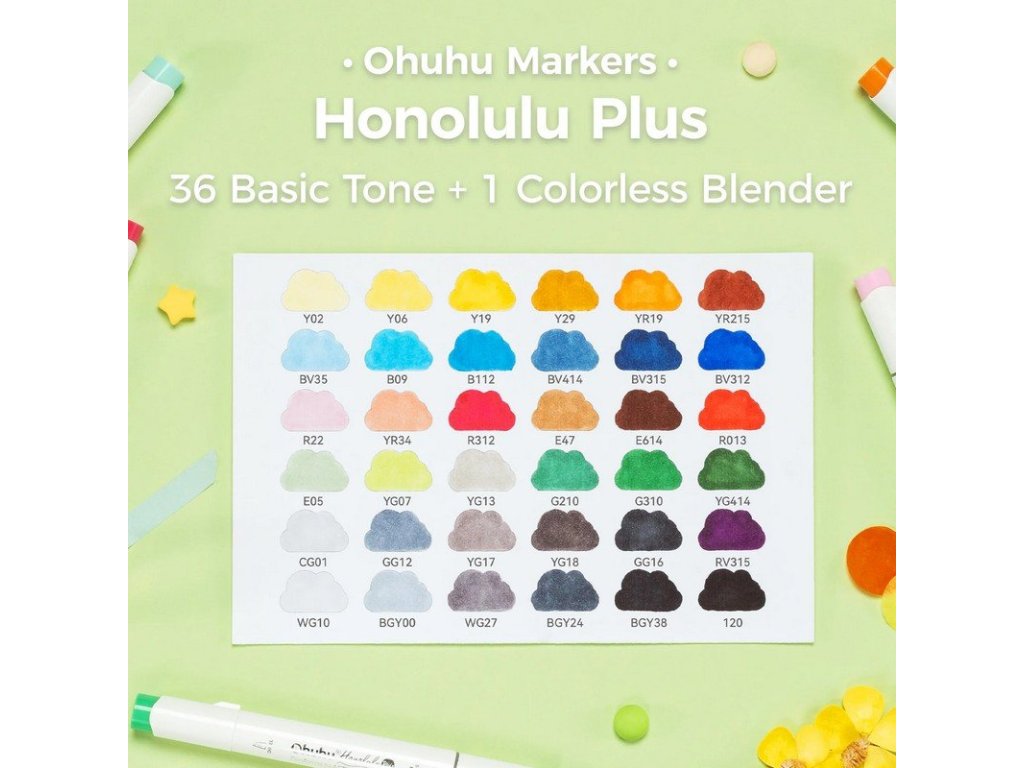 Lihové fixy OHUHU Honolulu Plus Series oboustranné PROFI PLUS Brush & Chisel, 36ks základní + blender