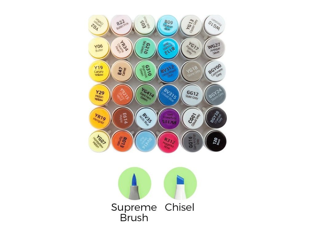Lihové fixy OHUHU oboustranné PROFI PLUS Brush & Chisel, 36ks základní + blender