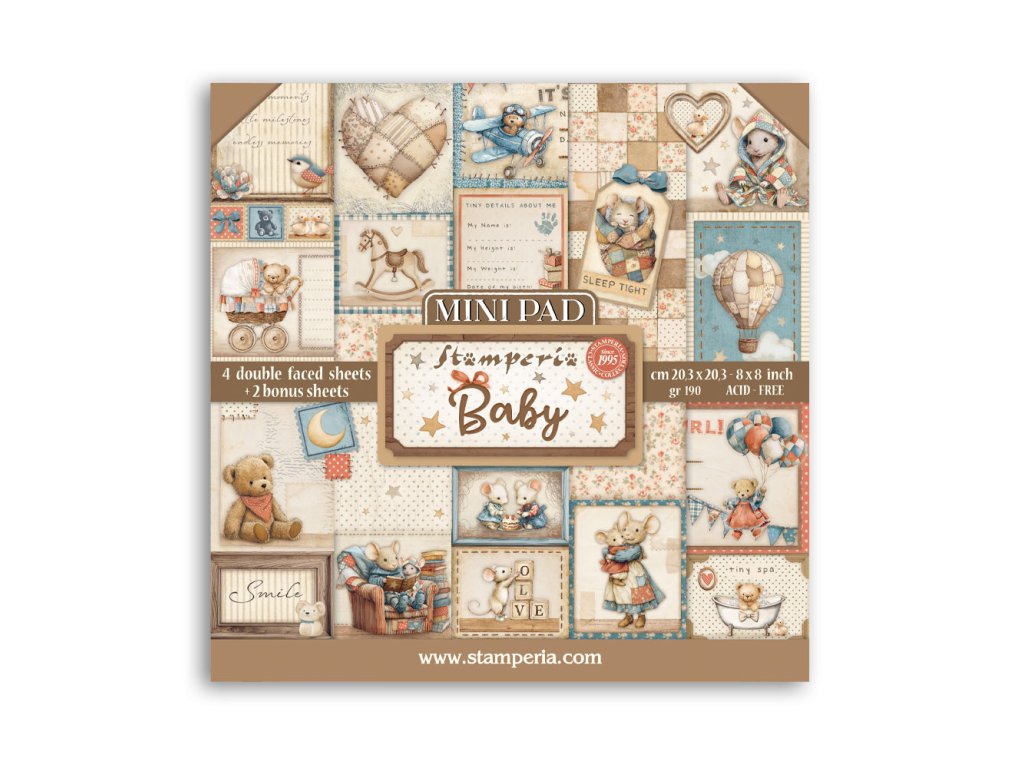 Tato prémiová sada 6 oboustranných papírů s něžnými baby motivy promění vaše scrapbookové album v poklad, který budete opatrovat celý život. Silná gramáž 190g/m² zajistí, že vaše výtvory vydrají generace – a díky bezkyselnému složení fotografie nikdy nezežloutnou ani nevyblednou.