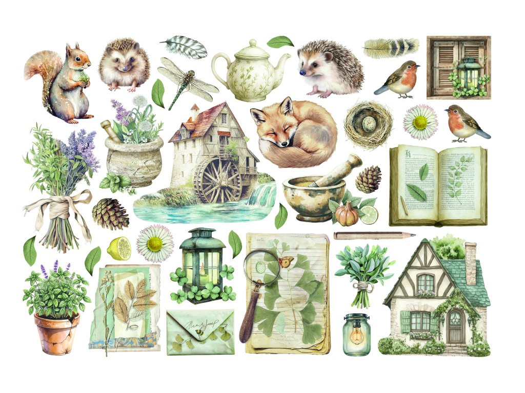 37 kusů pečlivě vyřezaných motivů lesní flóry vám dá nekonečné možnosti kombinací. A protože neobsahují kyselinu ani lignin, vaše výtvory zůstanou krásné i po letech – bez žloutnutí a křehnutí.