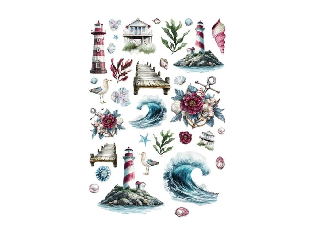Dekorativní papírové obrázky s motivy mořského pobřeží z kolekce Tide of Hope („příliv naděje“) se hodí na scrapbooking, cardmaking a další vyrábění. Jednotlivé motivy jsou dokonale vyseknuté, nemusí se vystřihovat. Nalepit je na svůj projekt můžete pomocí lepidla , lepicí pásky anebo lepicích 3D polštářků.
