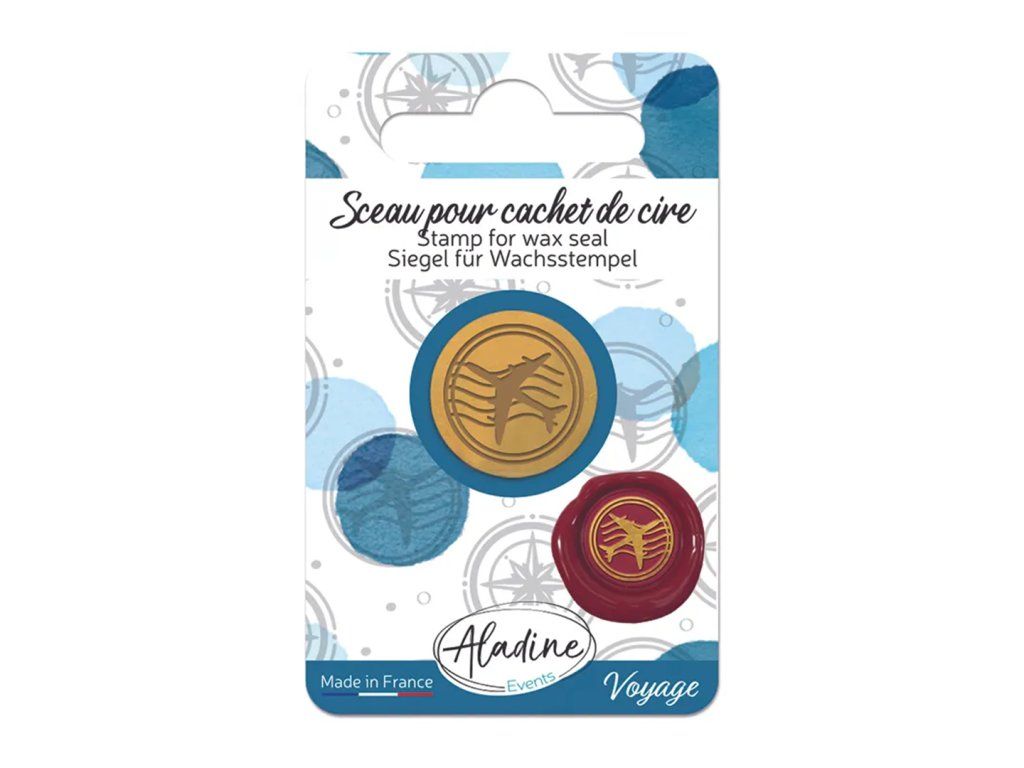 Pečetidlo je vyrobeno z mosazi a má průměr 2 cm. Motivem je letadlo, které lze na hotové pečeti zvýraznit pomocí akrylového fixu , díky němuž bude ještě lépe vidět.
