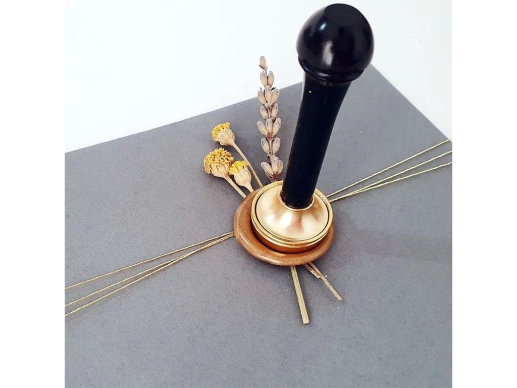Rukojeť na pečetění je nezbytná pomůcka při výrobě voskových pečetí. Slouží k uchopení kovového pečetidla s motivem a zaručuje bezpečnou manipulaci. Pečetidlo s vybraným motivem se na rukojeť jednoduše našroubuje a dá se se kdykoli vyměnit za jiné.