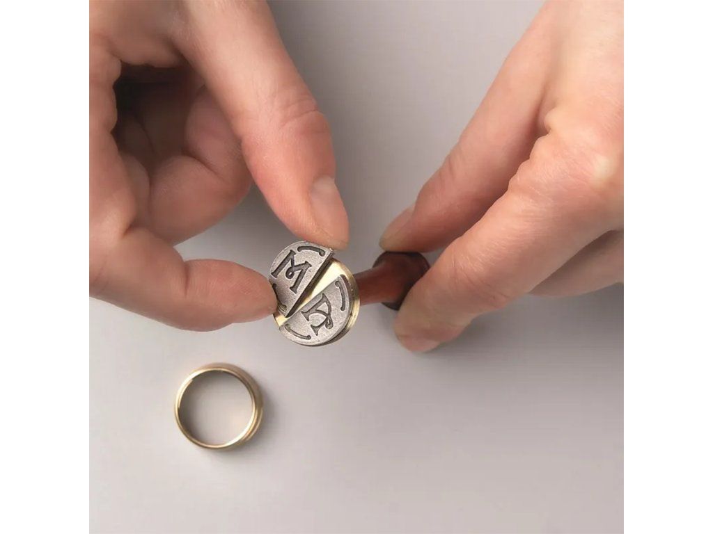 - Kovový kroužek našroubujeme zpět na rukojeť – slouží k přichycení pečetidla k rukojeti.
