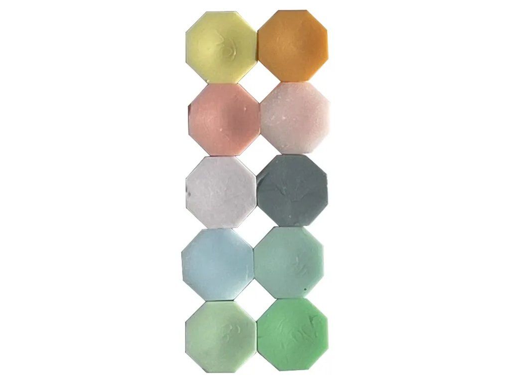 Mix různobarevných pečetících vosků ve formě granulí. Vosk se používá s pečetní sadou umožňující ho rozehřát v teflonové pečetní lžičce nad plamenem svíčky. K výrobě 1 pečetě stačí rozehřát 3–4 peletky. Pečeť můžete vytvořit jednobarevnou nebo různé barvy míchat.