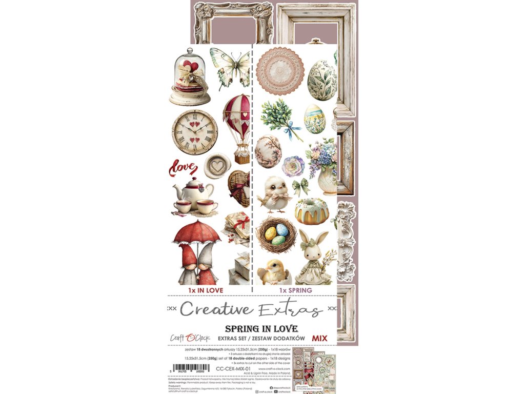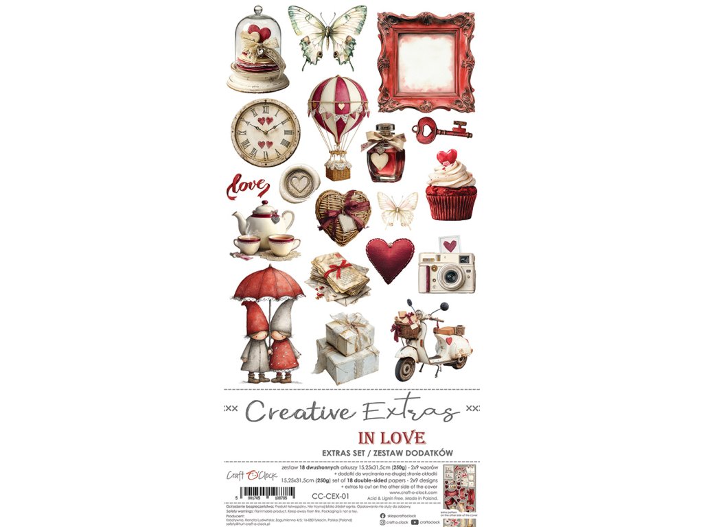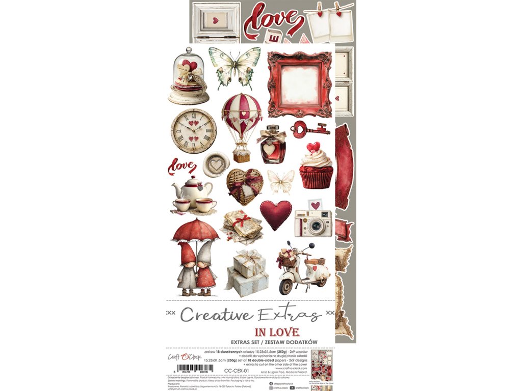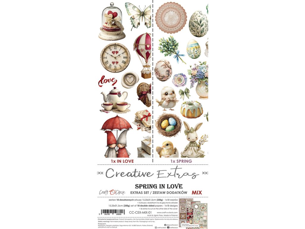 Otevřete tuto sadu a okamžitě ucítíte jaro. 18 nádherných oboustranných archů s romantickými motivy, které vám dají nekonečné možnosti tvoření. A k tomu 3 bonusové listy s prvky k vystřižení – žádné další hledání doplňků.