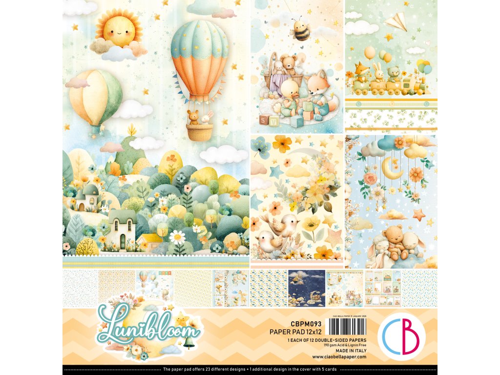 Držíte v rukou kolekci, která promění každý váš projekt v umělecké dílo. Sada Lunibloom od proslulé italské značky Ciao Bella přináší 12 oboustranně potištěných listů s 23 jedinečnými vzory – každý vypráví svůj vlastní příběh.