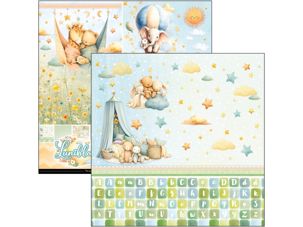 Sada oboustranných papírů Lunibloom – textury a pozadí, 8