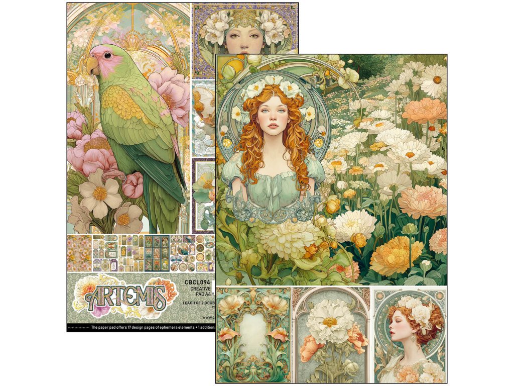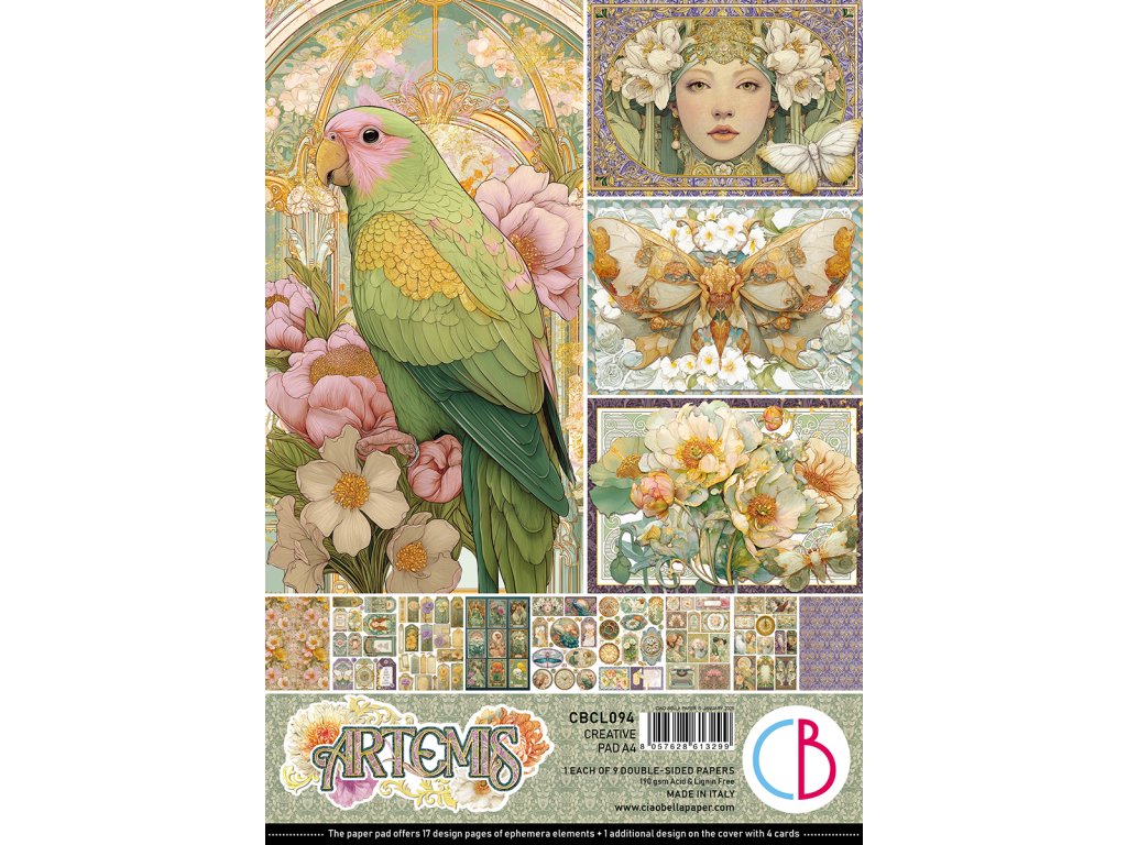 Hledáte způsob, jak posunout své scrapbooky, přáníčka a papírové výtvory na zcela novou úroveň? Sada Artemis od italské Ciao Bella vám nabízí přesně to, co potřebujete – 9 oboustranně potištěných listů plných efemérních karet, vintage visaček, poštovních razítek, medailonků a sentimentů, které vaše projekty okamžitě oživí.
