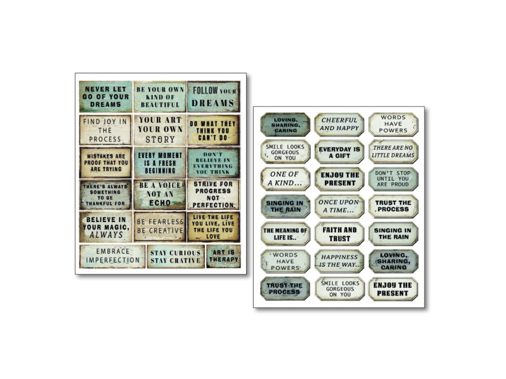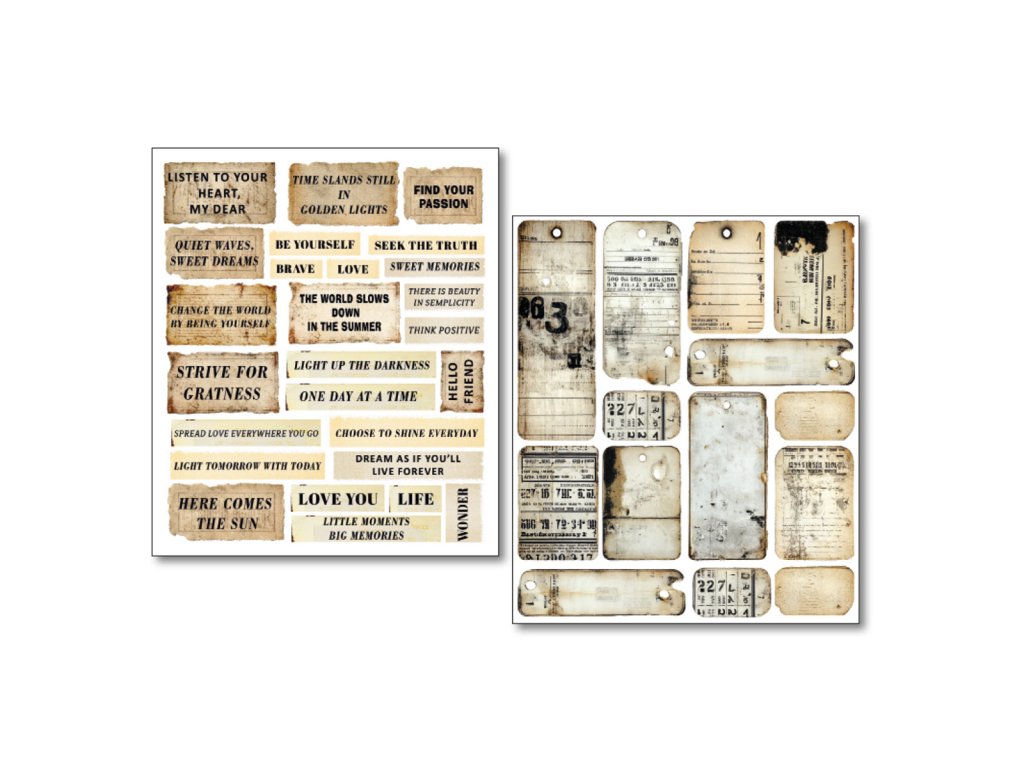 Držíte v rukou 10 ručně vyrobených italských samolepicích archů, které dodají vašim projektům nádech autentické elegance. Průhledný podklad splyne s jakýmkoliv pozadím – ať už tvoříte koláže, zdobíte přáníčka nebo budujete scrapbook plný vzpomínek.