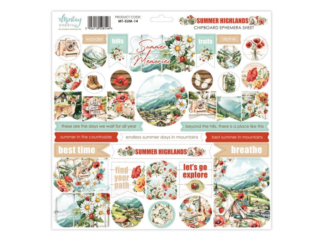 Balení obsahuje 40 kusů nádherně propracovaných chipboardových výřezů, které dodají vašim scrapbookovým stránkám, junk journalům a papírovým projektům nezaměnitelnou hloubku a charakter. Kolekce Summer Highlands vás přenese do sluncem zalitých letních luk a malebné vysočiny – každý výřez je pečlivě navržen tak, aby ladil jak samostatně, tak ve vzájemné kombinaci. Pevný chipboard zajišťuje, že výřezy krásně drží tvar, snadno se lepí a dodávají vašim dílům profesionální 3D efekt. Ať už tvoříte album, přání nebo dekoraci – s těmito ephemera proměníte každý projekt v malé umělecké dílo.