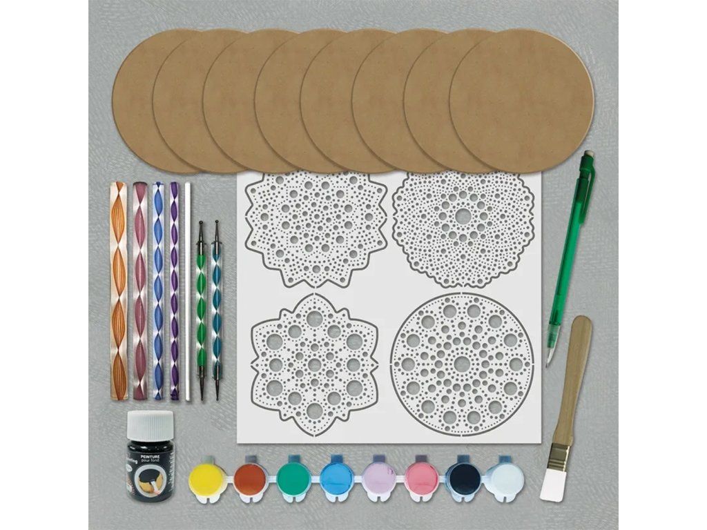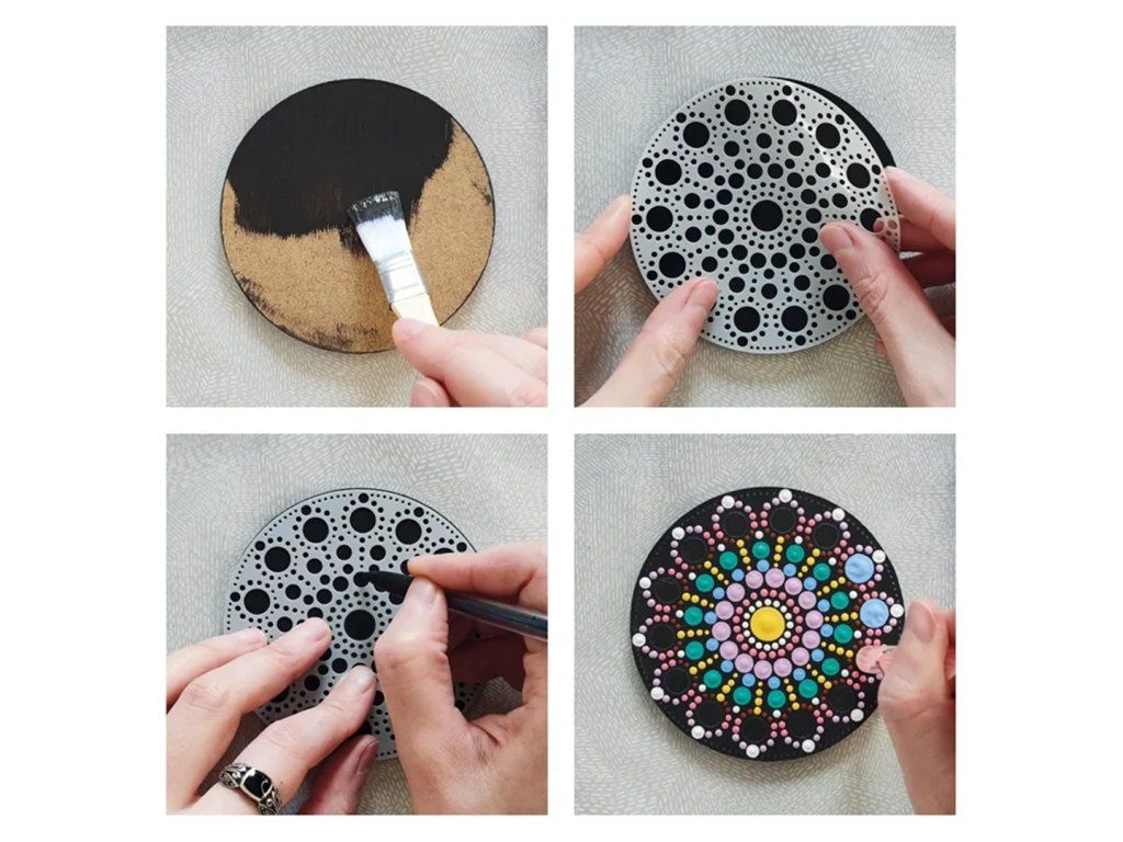 Tečkování rozvíjí kreativitu a soustředění, harmonická symetrie mandaly a jemná ruční práce napomáhá s odreagováním. Šablonky lze používat opakovaně, můžete si pořídit i další dřevěné kruhy k dekoraci a pokračovat v tvorbě.
